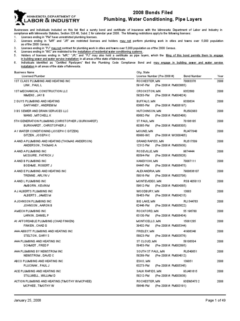 Department Of Labor Pe Bondsfiled08 Plumbing Surety Bond from imgv2-2-f.scribdassets.com Click to expand document information. Since 1986, hessian plumbing services, inc. We offer reliable plumbing and appliance installation services. If you need the services of a top rated master plumber (license #59111) in the northwest metro area based on quality & price. You can count on walsh plumbing to get the job done. Residential and commercial plumbing solutions. Kals plumbing asub kohas maple grove. Precision plumbing is a quality residential plumber as well as a commercial plumbing contractor who is highly experienced with design/build installs for municipal buildings, parks, schools, offices/condos.