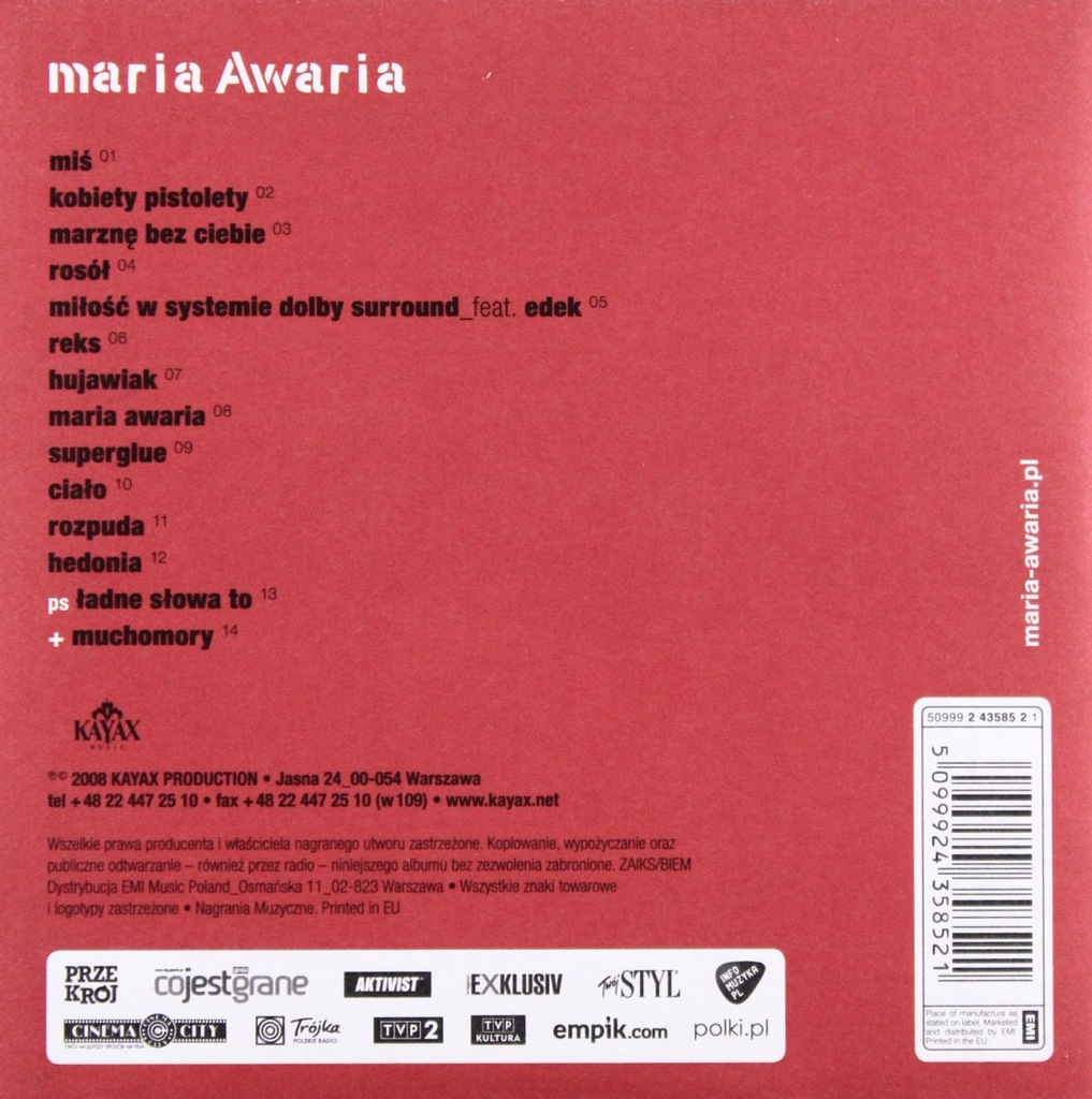 Miłość w systemie dolby surround (feat. Rated #1522 in the best albums of 2008. Maciej maleńczuk edek leszczyk 3:08 8. Listen to maria awaria on spotify. To samo, co jest w tej książeczce.