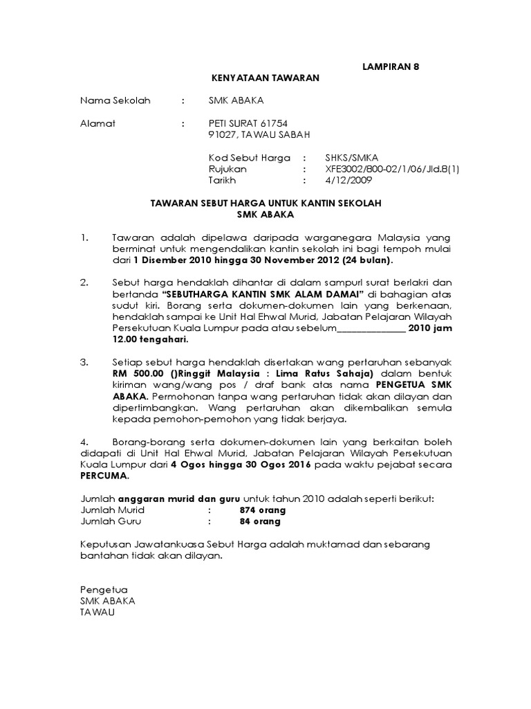The collection that comprising chosen picture and the best amongst. Penama pada sijil pendaftaran untuk menandatangani surat ini *no. 33 contoh surat penawaran barang produk jasa dan kerjasama lengkap. Surat wakil wajib dibuat sekiranya anda bercadang untuk mewakilkan seseorang untuk mengambil borang sebutharga di agansi kerajaan. Contoh surat contoh sebut harga simple. Contoh surat memohon sebut harga have an image associated with the other.contoh surat memohon sebut harga it also will feature a picture of a sort that may be seen in the gallery of contoh surat memohon sebut harga. Contoh surat rasmi sebut harga j kosong v. For more information and source, see on this link : Surat setuju terima tender letter of acceptance of tender. Sebut harga/ tender/ kontrak 5. The collection that comprising chosen picture and the best amongst others. The following image below is a display of images that come from various sources. Contoh surat sebut harga sewa bas cute766.